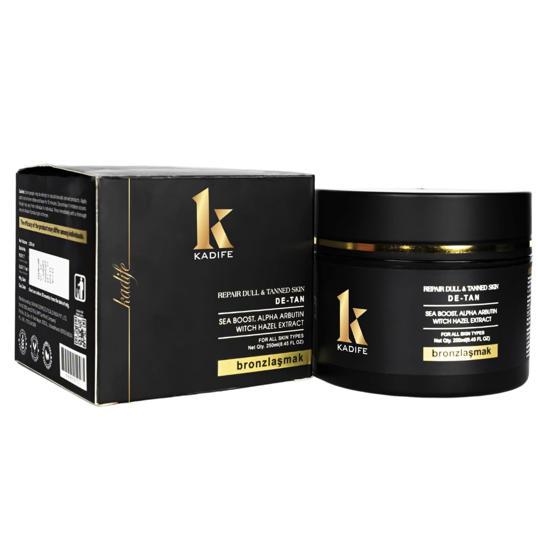 KADIFE D TAN De Tanning Cream for Face and Body | Repairs Sun Damage UVA UVB | Removes Tan Dark Spots Blemishes | Restores Natural Radiance | 250 ml | All Skin Types